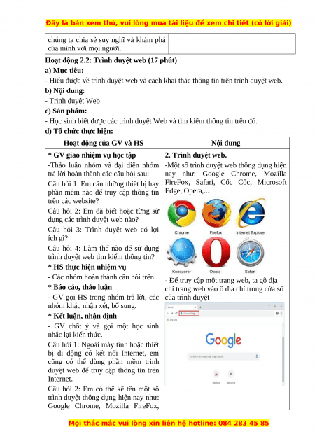 Hoạt động 2.2: Trình duyệt web (17 phút)