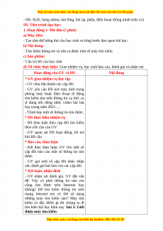 - Học sinh hiểu được công dụng máy tìm kiếm. b) Nội dung: - Máy tìm kiếm c) Sản phẩm: