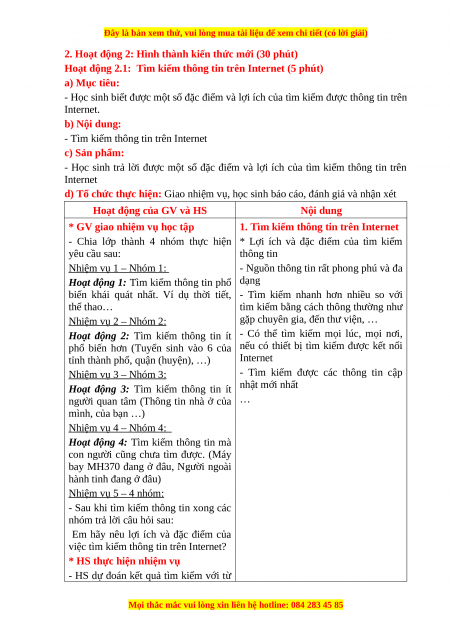Hoạt động 2.1: Tìm kiếm thông tin trên Internet (5 phút) a) Mục tiêu: