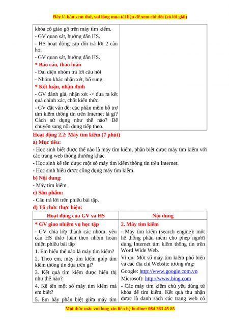 Hoạt động 2.3: Tìm thông tin bằng máy tìm kiếm (18 phút)
