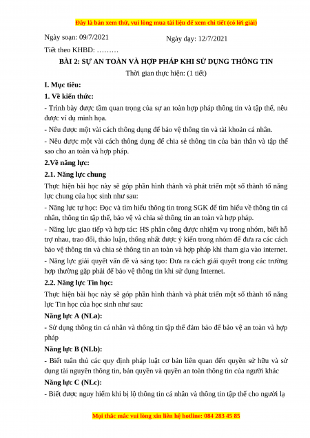 Giáo án Tin học 6 Cánh diều Chủ đề D bài 2: Sự an toàn và hợp pháp khi sử dụng thông tin