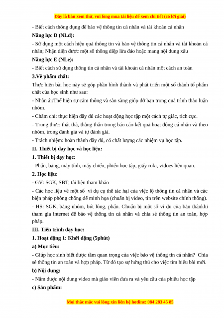 - Biết cách thông dụng để bảo vệ thông tin cá nhân và tài khoản cá nhân Năng lực D (NLd):