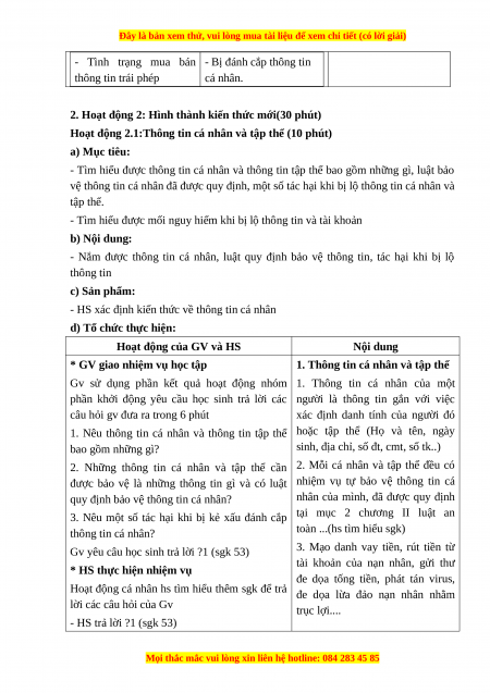 - Giúp học sinh biết được tầm quan trọng của việc bảo vệ thông tin cá nhân? Chia