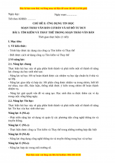 - Biết được cách sử dụng công cụ Tìm kiếm và Thay thế 2.Về năng lực: 2.1. Năng lực chung
