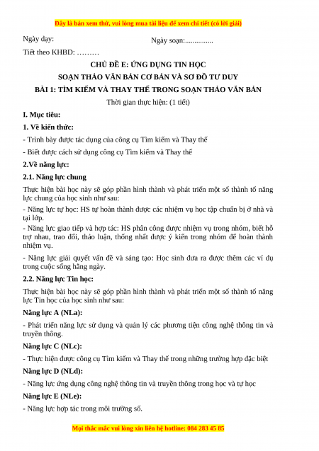 - Thực hiện được công cụ Tìm kiếm và Thay thế trong những trường hợp đặc biệt Năng lực D (NLd):