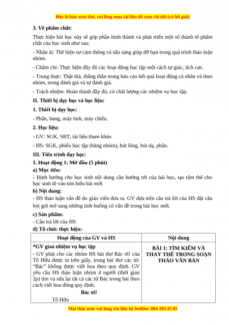 - Phấn, bảng, máy tính, máy chiếu. 2. Học liệu: