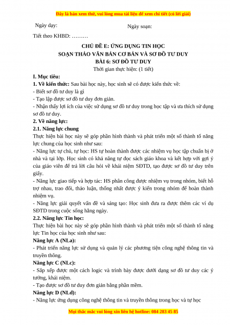 Giáo án Tin học 6 Cánh diều Chủ đề E bài 6: Sơ đồ tư duy