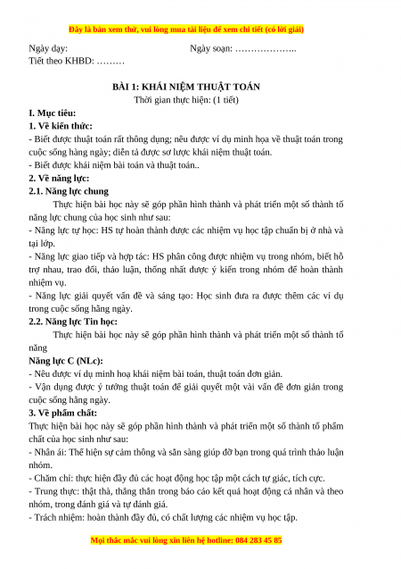 - Vận dụng được ý tưởng thuật toán để giải quyết một vài vấn đề đơn giản trong cuộc sống hằng ngày. 3. Về phẩm chất: