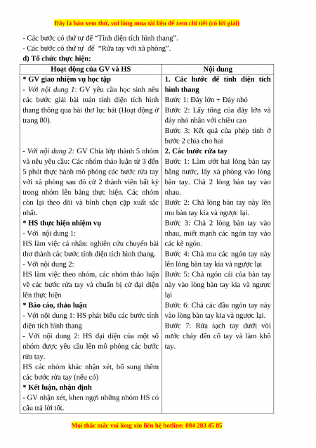 thơ thành các bước tính diện tích hình thang. Bước 4: Chà mu các ngón tay này - Với nội dung 2: