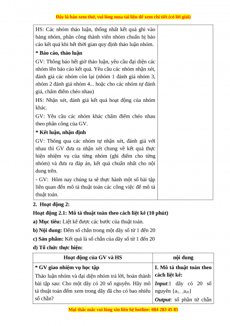 liên quan đến mô tả thuật toán các công việc để mô tả thuật toán. 2. Hoạt động 2: