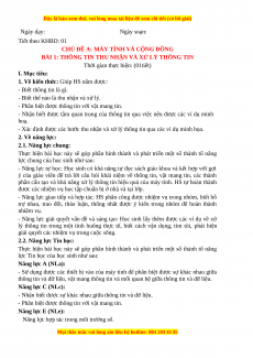 - Xác định được các bước thu nhận và xử lý thông tin qua các ví dụ minh họa. 2. Về năng lực: 2.1. Năng lực chung: