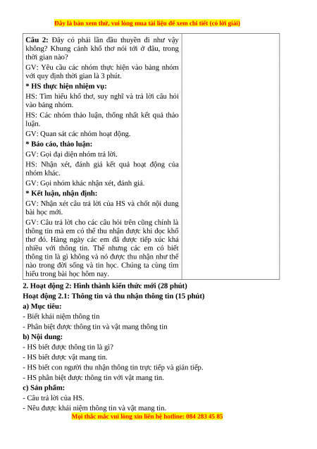 Hoạt động 2.1: Thông tin và thu nhận thông tin (15 phút) a) Mục tiêu: