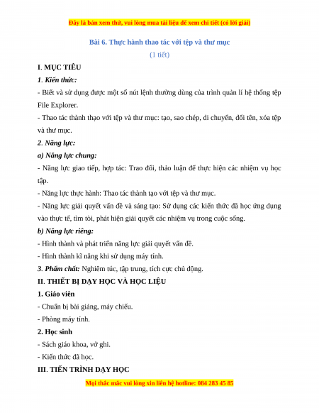 Bài 6. Thực hành thao tác với tệp và thư mục (1 tiết) I. MỤC TIÊU