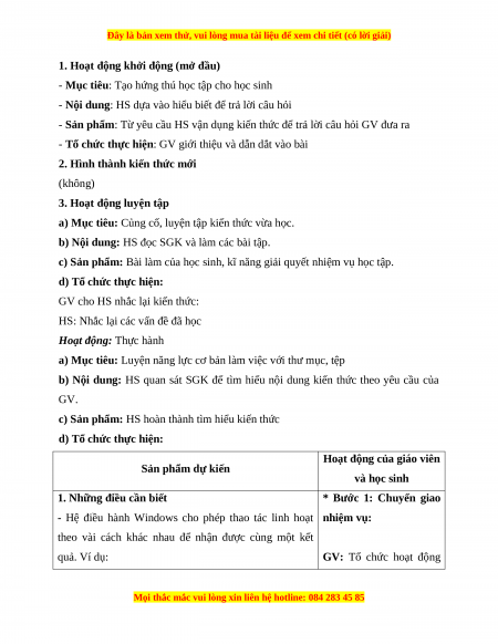- Năng lực thực hành: Thao tác thành tạo với tệp và thư mục.