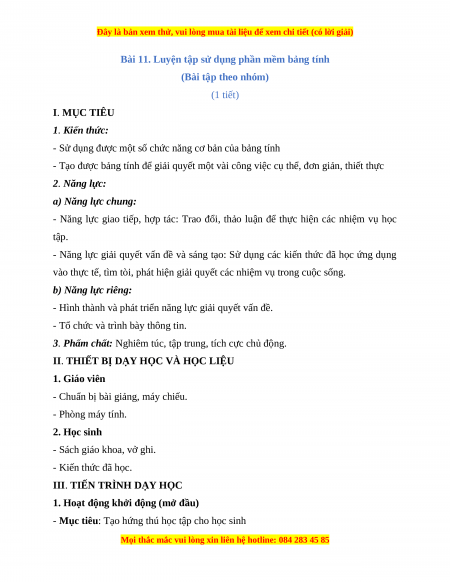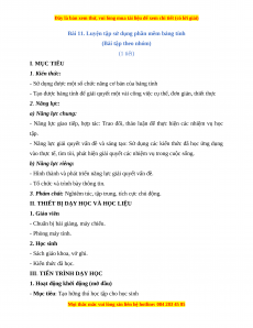 Bài 11. Luyện tập sử dụng phần mềm bảng tính (Bài tập theo nhóm) (1 tiết) I. MỤC TIÊU