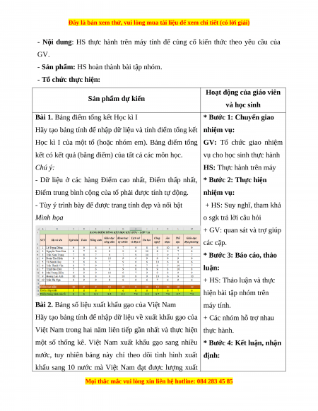 Giáo án Tin học 7 Cánh diều Chủ đề E Bài 11: Luyện tập sử dụng phần mềm bảng tính (Bài tập theo nhóm)