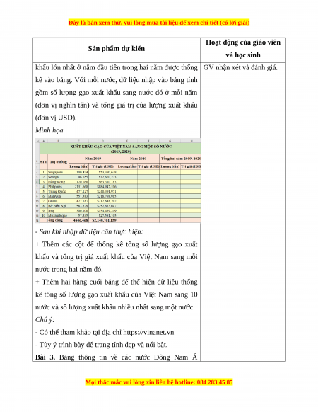 một số thống kê. Việt Nam xuất khẩu gạo sang nhiều * Bước 4: Kết luận, nhận