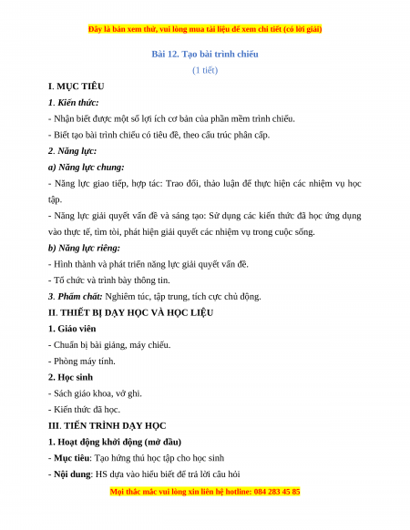 Bài 12. Tạo bài trình chiếu (1 tiết) I. MỤC TIÊU