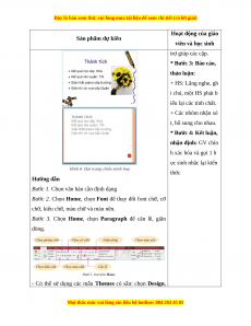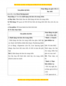 Em hãy thay đổi hình thức trình bày cho trang chiếu HS: Thảo luận, trả (Hình 4) như em muốn lời * Bước 2: Thực hiện nhiệm vụ: + HS: Suy nghĩ, tha m khảo sgk trả lời câ u hỏi + GV: quan sát và