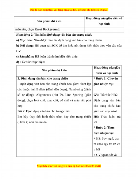Hoạt động 2: Tìm hiểu định dạng văn bản cho trang chiếu