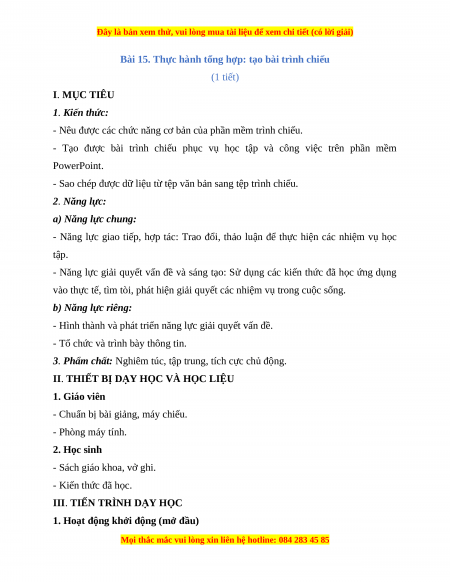 Bài 15. Thực hành tổng hợp: tạo bài trình chiếu (1 tiết) I. MỤC TIÊU