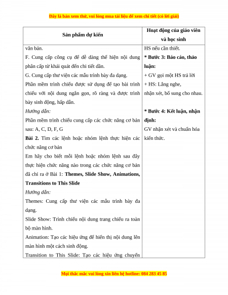 F. Cung cấp công cụ để dễ dàng thể hiện nội dung * Bước 3: Báo cáo, thảo