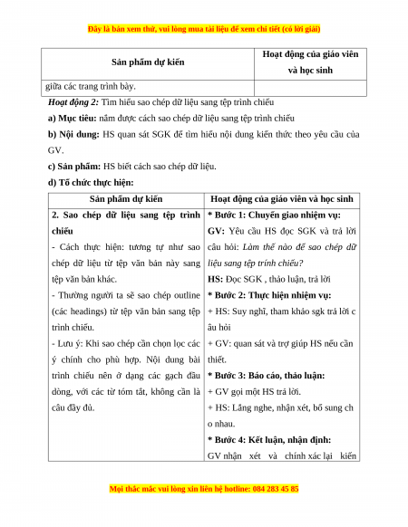 Hoạt động 2: Tìm hiểu sao chép dữ liệu sang tệp trình chiếu