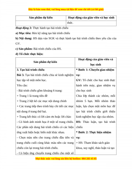 Giáo án Tin học 7 Cánh diều Chủ đề E Bài 15: Thực hành tổng hợp: tạo bài trình chiếu