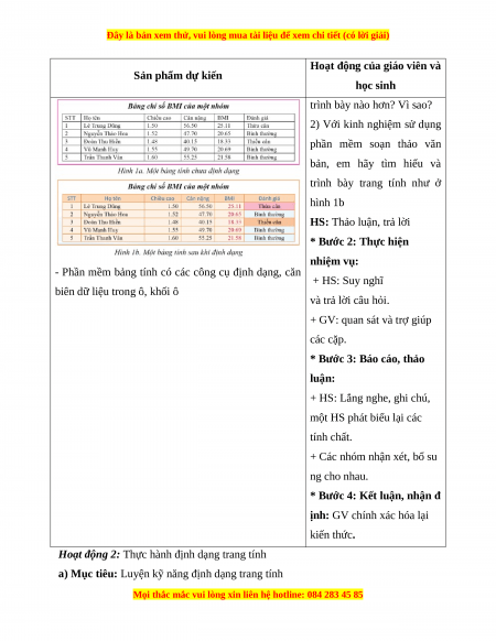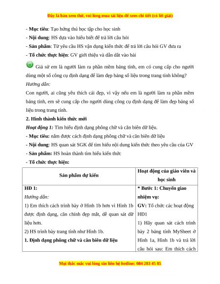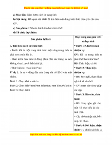 Giáo án Tin học 7 Cánh diều Chủ đề E Bài 9: Định dạng trang tính và in