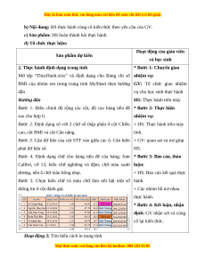 Hoạt động 2: Thực hành định dạng trang tính