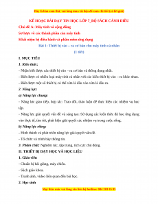 KẾ HOẠC BÀI DẠY TIN HỌC LỚP 7_BỘ SÁCH CÁNH DIỀU