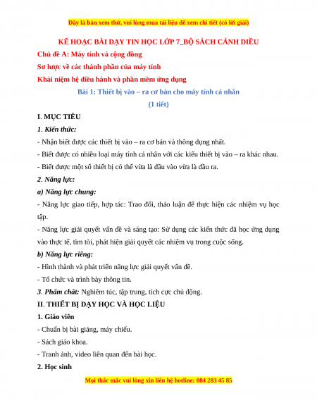 Giáo án Tin học 7 Cánh diều | Giáo án Tin học 7 mới chuẩn nhất