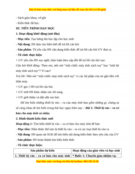 1. Thiết bị vào – ra cơ bản cho máy tính * Bước 1: Chuyển giao nhiệm vụ: