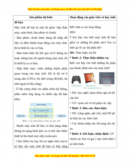 Hoạt động 1: Tìm hiểu thiết bị vào – ra cơ bản cho máy tính để bàn