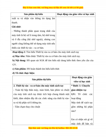 Hoạt động 2: Tìm hiểu Thiết bị vào ra cơ bản cho máy tính xách tay