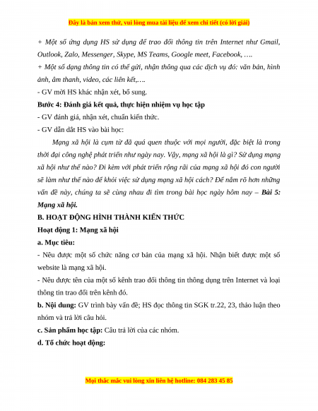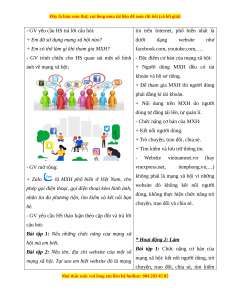 Hoạt động 1: Mạng xã hội a. Mục tiêu: