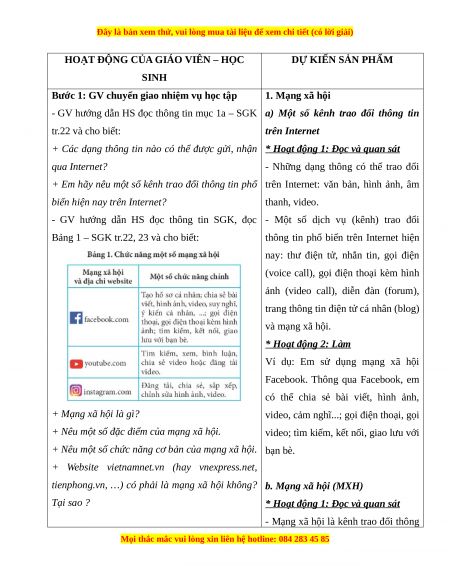 Bước 1: GV chuyển giao nhiệm vụ học tập 1. Mạng xã hội