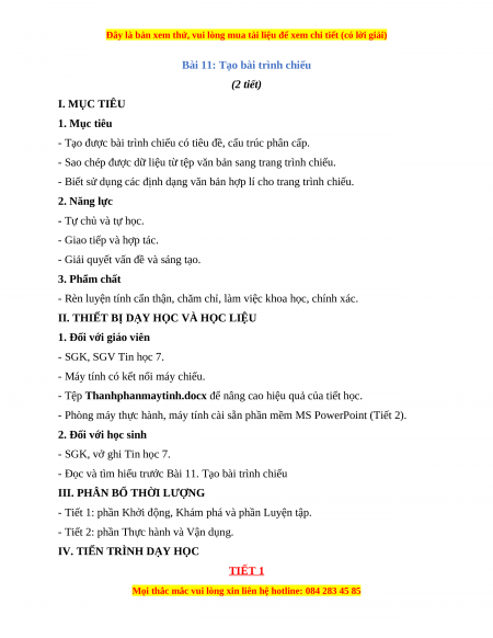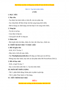Bài 11: Tạo bài trình chiếu (2 tiết) I. MỤC TIÊU 1. Mục tiêu