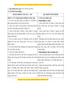 - Tiết 1: phần Khởi động, Khám phá và phần Luyện tập.