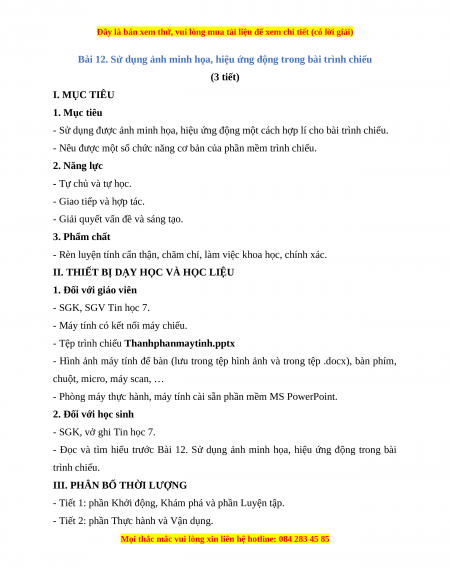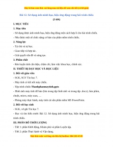 Bài 12. Sử dụng ảnh minh họa, hiệu ứng động trong bài trình chiếu (3 tiết) I. MỤC TIÊU 1. Mục tiêu