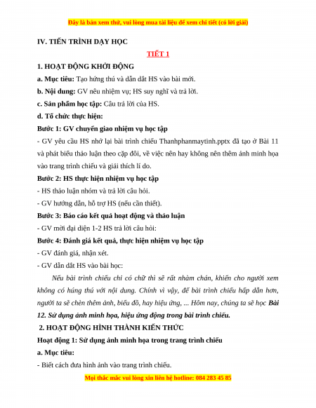 IV. TIẾN TRÌNH DẠY HỌC TIẾT 1