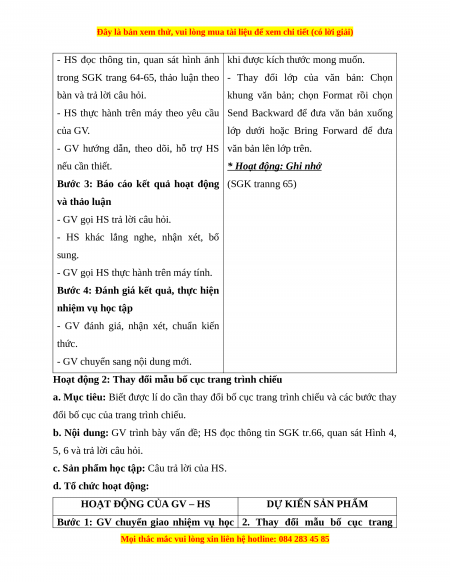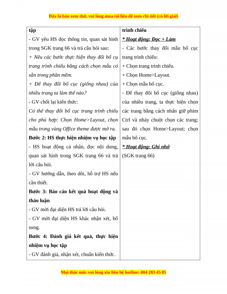 Bước 1: GV chuyển giao nhiệm vụ học 2. Thay đổi mẫu bố cục trang
