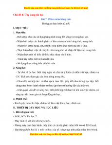 Giáo án Tin học 7 Chủ đề 4 Bài 7 (Chân trời sáng tạo): Phần mềm bảng tính
