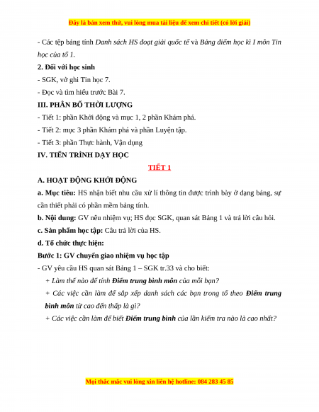 - Tiết 1: phần Khởi động và mục 1, 2 phần Khám phá.