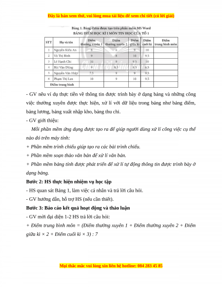 - Tệp Bảng điểm học kì 1 môn tin học của tổ 1 được tạo trên phần mềm MS Word.