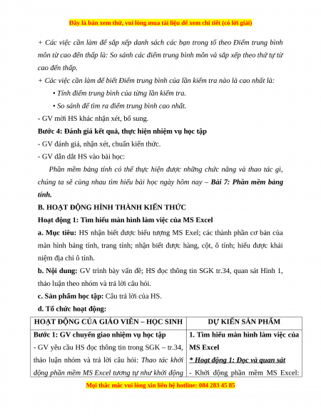 - GV yêu cầu HS đọc thông tin trong SGK – tr.34, MS Excel