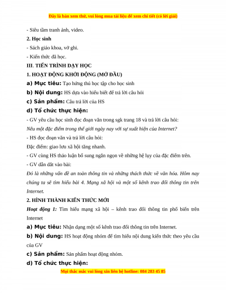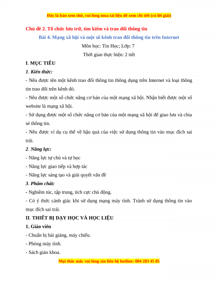 Giáo án Tin học 7 Kết nối tri thức Chủ đề 2 Bài 4 Mạng xã hội và một số kênh trao đổi thông tin trên Interne