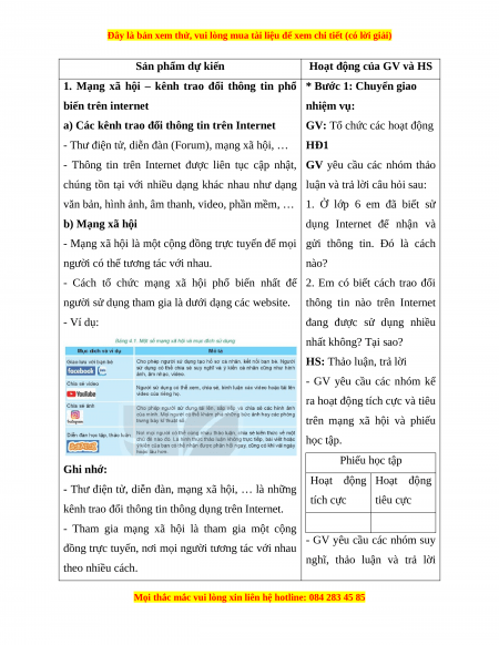1. Mạng xã hội – kênh trao đổi thông tin phổ * Bước 1: Chuyển giao biến trên internet nhiệm vụ: