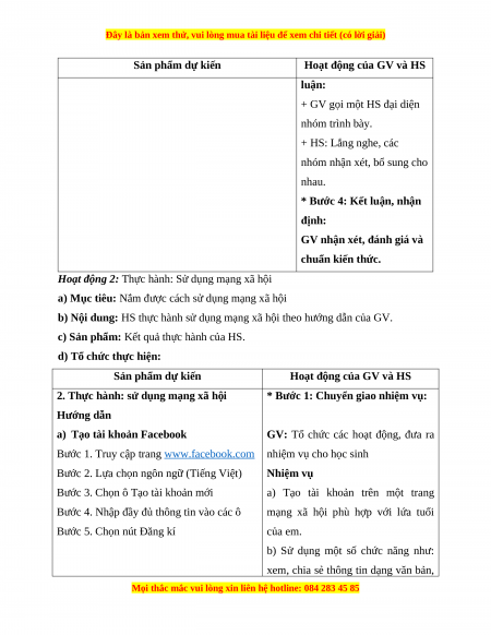 Hoạt động 2: Thực hành: Sử dụng mạng xã hội