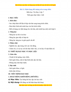 Thời gian thực hiện: 2 tiết I. MỤC TIÊU